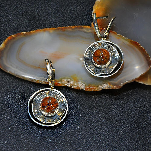 СРЕБЪРНИ ОБЕЦИ С КАФЯВ МЪХОВ АХАТ, РЪЧНА ИЗРАБОТКА. ДИАМЕТЪР НА КАМЪКА – 10 мм., ДИАМЕТЪР НА ОБЕЦАТА – 2 см.АНГЛИЙСКО ЗАКОПЧАВАНЕ.