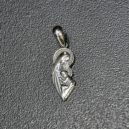 СРЕБЪРЕН МЕДАЛЬОН - БОГОРОДИЦА С МЛАДЕНЕЦА.РАЗМЕРИ НА МЕДАЛЬОНА – 2.2/0.9 см.