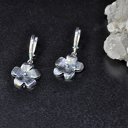 СРЕБЪРНИ ОБЕЦИ - ЦВЕТЕ, РЪЧНА ИЗРАБОТКА.ГОЛЕМИНА НА ОБЕЦАТА – 1.9/1.8 см.АНГЛИЙСКО ЗАКОПЧАВАНЕ.