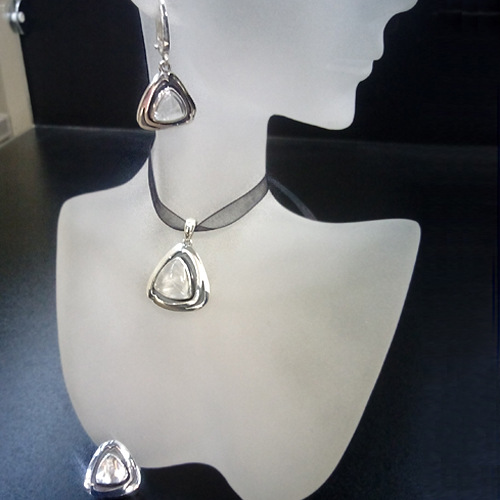 СРЕБЪРЕН КОМПЛЕКТ С ПЛАНИНСКИ КРИСТАЛ, РЪЧНА ИЗРАБОТКА, СЪСТОЯЩ СЕ ОТ МЕДАЛЬОН, ПРЪСТЕН И ОБЕЦИ.