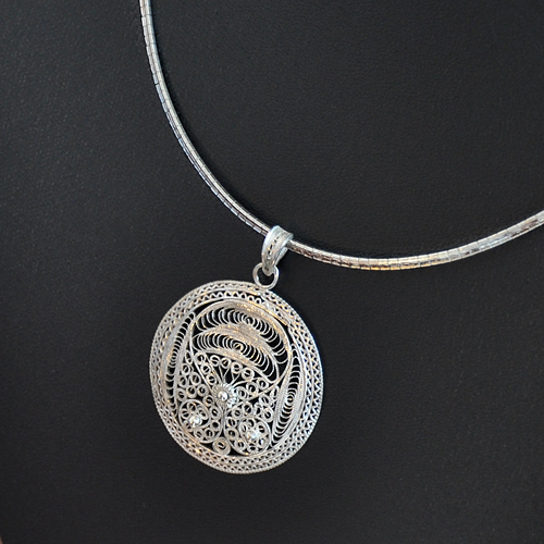 СРЕБЪРЕН МЕДАЛЬОН, РЪЧНА ИЗРАБОТКА.ДИАМЕТЪР – 3.7 см.