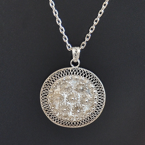 СРЕБЪРЕН МЕДАЛЬОН, РЪЧНА ИЗРАБОТКА.ДИАМЕТЪР – 3.7 см.