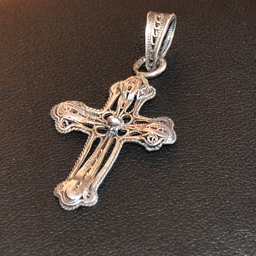 СРЕБЪРЕН МЕДАЛЬОН-КРЪСТ С ОКСИДИРАНО СРЕБРО, РЪЧНА ИЗРАБОТКА. РАЗМЕРИ –4/2 см.