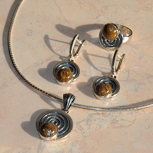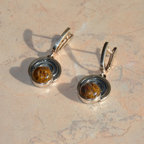 СРЕБЪРНИ ОБЕЦИ С МЪХОВ АХАТ, РЪЧНА ИЗРАБОТКА.ГОЛЕМИНА НА КАМЪКА – 9 мм., ДИАМЕТЪР НА ОБЕЦАТА 1.5 см. АНГЛИЙСКО ЗАКОПЧАВАНЕ.