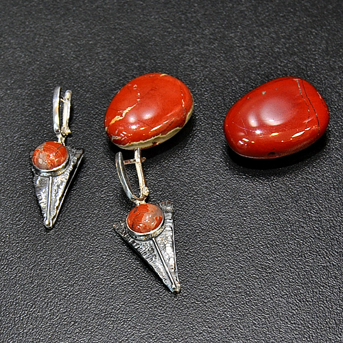 СРЕБЪРНИ ОБЕЦИ С МАРОКАНСКИ ЯСПИС, РЪЧНА ИЗРАБОТКА.ГОЛЕМИНА НА ОБЕЦАТА – 2.3/1.7 см. ДИАМЕТЪР НА КАМЪКА 9 мм. АНГЛИЙСКО ЗАКОПЧАВАНЕ.