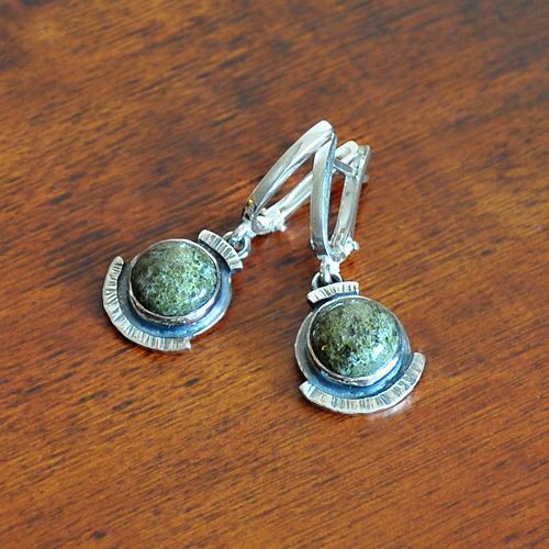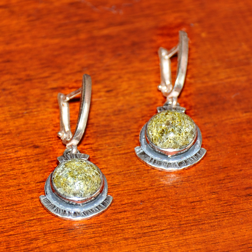 СРЕБЪРНИ ОБЕЦИ С ТЪМНОЗЕЛЕН МЪХОВ АХАТ, РЪЧНА ИЗРАБОТКА.ГОЛЕМИНА НА КАМЪКА – 9 мм., ГОЛЕМИНА НА ОБЕЦАТА 3.5/1.5 см.АНГЛИЙСКО ЗАКОПЧАВАНЕ.