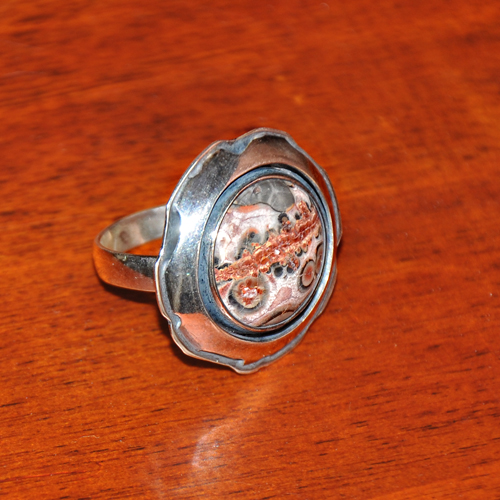 СРЕБЪРЕН ПРЪСТЕН С ЛЕОПАРДОВ ЯСПИС, РЪЧНА ИЗРАБОТКА.ГОЛЕМИНА НА КАМЪКА – 16 мм., ГОЛЕМИНА НА ПРЪСТЕНА 2.4 см., РАЗМЕР НА ПРЪСТЕНА 53.ЗАБЕЛЕЖКА: ПРЪСТЕНЪТ Е С ПОДВИЖНА ВРЪЗКА ПОЗВОЛЯВАЩА РАЗШИРЯВАНЕТО МУ С ДО ДВА РАЗМЕРА!