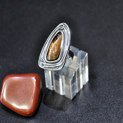 СРЕБЪРЕН ПРЪСТЕН – УНИКАТ, С ОПУШЕН КВАРЦ, РЪЧНА ИЗРАБОТКА.ГОЛЕМИНА НА КАМЪКА 23/10 мм. ГОЛЕМИНА НА ПРЪСТЕНА – 3.5/2.2 см.РАЗМЕР НА ПРЪСТЕНА 52, КОРИГИРАЩА ХАЛКА.