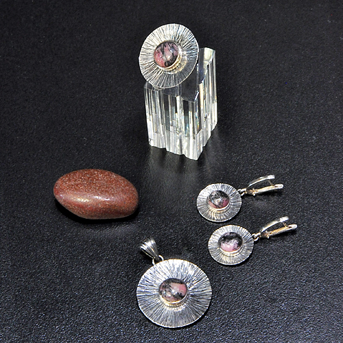 СРЕБЪРЕН ПРЪСТЕН С РОДОНИТ, РЪЧНА ИЗРАБОТКА.ДИАМЕТЪР НА ПРЪСТЕНА – 2.7см., НА КАМЪКА - 11 мм.РАЗМЕР НА ПРЪСТЕНА 53, КОРИГИРАЩА ХАЛКА.