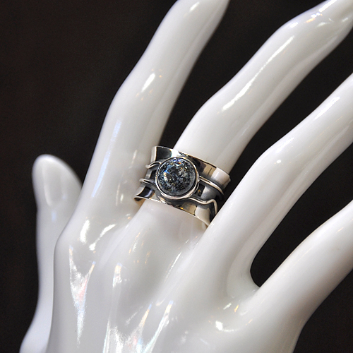 СРЕБЪРЕН ПРЪСТЕН – ХАЛКА, С ДЕНДРИТ АХАТ МАДАГАСКАР.ШИРИНА НА ХАЛКАТА – 1.3 см., ДИАМЕТЪР НА КАМЪКА 9 мм.РАЗМЕР НА ПРЪСТЕНА 55.