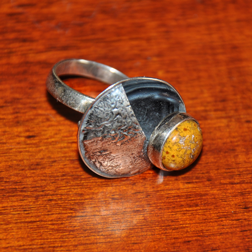 СРЕБЪРЕН ПРЪСТЕН С ЖЪЛТ ЯСПИС, РЪЧНА ИЗРАБОТКА.ГОЛЕМИНА НА КАМЪКА – 9 мм., ДИАМЕТЪР НА ПРЪСТЕНА 2 см., РАЗМЕР НА ПРЪСТЕНА 52.ЗАБЕЛЕЖКА: ПРЪСТЕНЪТ Е С ПОДВИЖНА ВРЪЗКА ПОЗВОЛЯВАЩА РАЗШИРЯВАНЕТО МУ С ДО ДВА РАЗМЕРА!