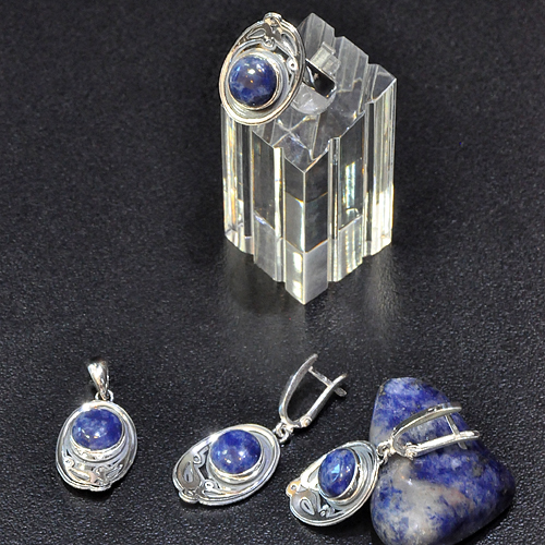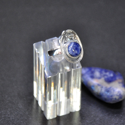 СРЕБЪРЕН ПРЪСТЕН СЪС СОДАЛИТ, РЪЧНА ИЗРАБОТКА.ГОЛЕМИНА НА ПРЪСТЕНА – 2/1.5 см., НА КАМЪКА 9 мм.РАЗМЕР НА ПРЪСТЕНА 56, КОРИГИРАЩА ХАЛКА.