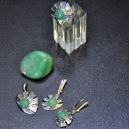 СРЕБЪРЕН ПРЪСТЕН СЪС ЗЕЛЕН АВАНТЮРИН, РЪЧНА ИЗРАБОТКА.ГОЛЕМИНА НА ПРЪСТЕНА – 2.4/1.8 см., ДИАМЕТЪР НА КАМЪКА 9 мм.РАЗМЕР НА ПРЪСТЕНА 54, КОРИГИРАЩА ХАЛКА.