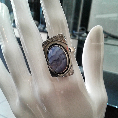 СРЕБЪРЕН ПРЪСТЕН С АХАТ, РЪЧНА ИЗРАБОТКА.ГОЛЕМИНА НА ПРЪСТЕНА – 2.7/1.7 см., НА КАМЪКА - 17/12 мм.РАЗМЕР НА ПРЪСТЕНА 54, КОРИГИРАЩА ХАЛКА.