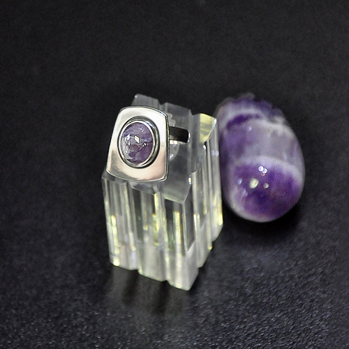 СРЕБЪРЕН ПРЪСТЕН С КАМЪК АМЕТИСТ, РЪЧНА ИЗРАБОТКА