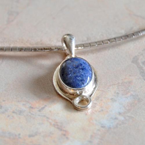 СРЕБЪРЕН МЕДАЛЬОН С ДЮМОРТИЕРИТ, РЪЧНА ИЗРАБОТКА.ГОЛЕМИНА НА КАМЪКА – 13/9 мм., ГОЛЕМИНА НА МЕДАЛЬОНА – 2.8/1.3 см.