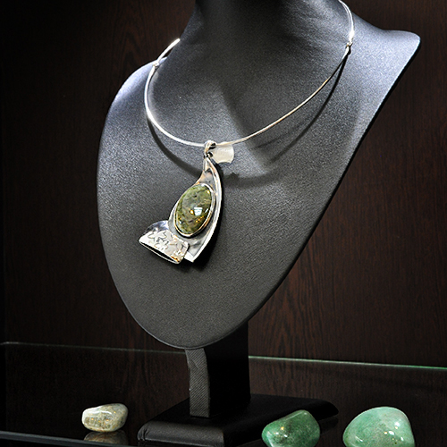 СРЕБЪРЕН МЕДАЛЬОН - УНИКАТ, СЪС ЗЕЛЕН ЯСПИС, РЪЧНА ИЗРАБОТКА.ГОЛЕМИНА НА КАМЪКА – 30/22 мм.,