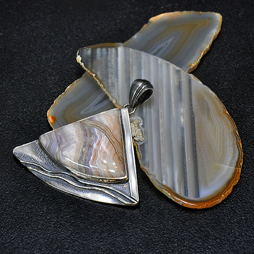 СРЕБЪРЕН МЕДАЛЬОН С АХАТ „БЛУЛЕЙС“, РЪЧНА ИЗРАБОТКА.ГОЛЕМИНА НА КАМЪКА – 27/35 мм., ГОЛЕМИНА НА МЕДАЛЬОНА – 3.7/4.9 см.