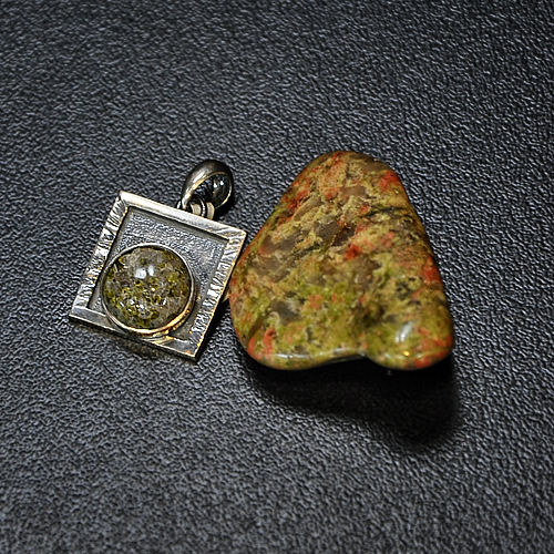 СРЕБЪРЕН МЕДАЛЬОН СЪС СИВОЗЕЛЕН КВАРЦ, РЪЧНА ИЗРАБОТКА.ДИАМЕТЪР НА КАМЪКА – 12 мм., ГОЛЕМИНА НА МЕДАЛЬОНА – 1.8/1.8см.