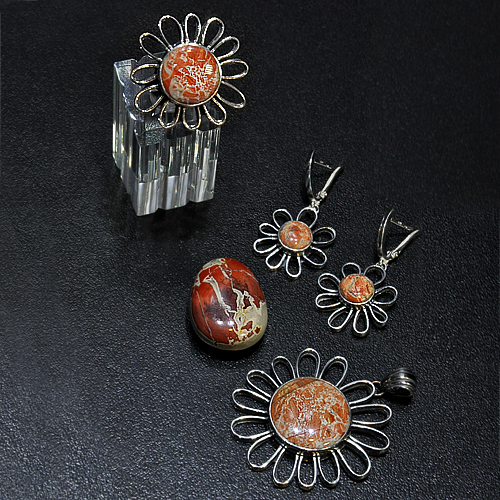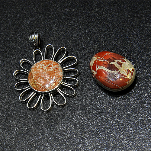 СРЕБЪРЕН МЕДАЛЬОН С ЯСПИС „БРЕКЧА“, РЪЧНА ИЗРАБОТКА.ДИАМЕТЪР НА КАМЪКА 21мм.ДИАМЕТЪР НА МЕДАЛЬОНА – 4 см.