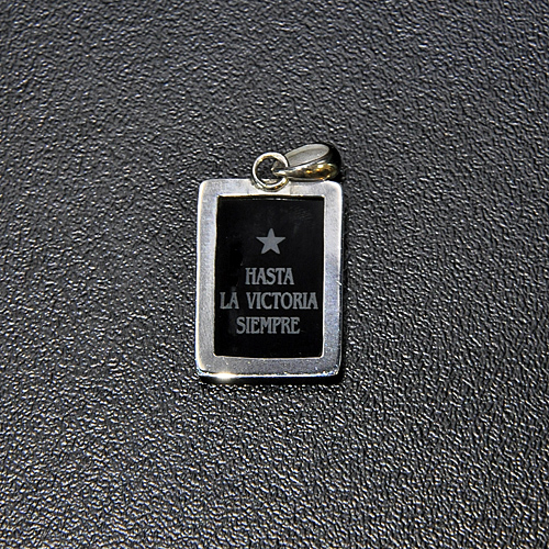 СРЕБЪРЕН МЕДАЛЬОН „ЧЕ ГЕВАРА“, РЪЧНО ИЗРАБОТЕН ОТ ПЛОЧКА ОНИКС, ЛАЗЕРНО ГРАВИРАНА, СЪС СРЕБЪРЕН ОБКОВ.ГОЛЕМИНА НА МЕДАЛЬОНА – 2.5/1.8 см.