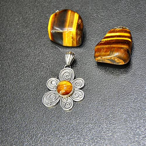 СРЕБЪРЕН МЕДАЛЬОН – ЦВЕТЕ С ТИГРОВО ОКО, РЪЧНА ИЗРАБОТКА.ГОЛЕМИНА НА МЕДАЛЬОНА – 3.2/3 см., ДИАМЕТЪР НА КАМЪКА 11 мм.