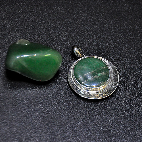 СРЕБЪРЕН МЕДАЛЬОН С АВАНТЮРИН, РЪЧНА ИЗРАБОТКА.
