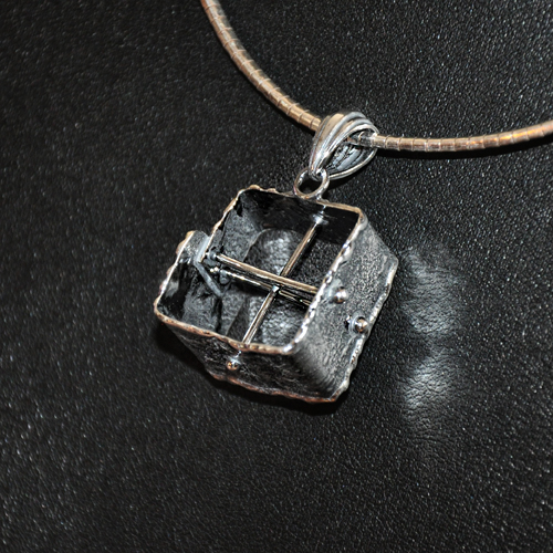 СРЕБЪРЕН МЕДАЛЬОН С АСИМЕТРИЧНА ФОРМА, РЪЧНА ИЗРАБОТКА, ГОЛЕМИНА НА МЕДАЛЬОНА 3.4/2.1 см.