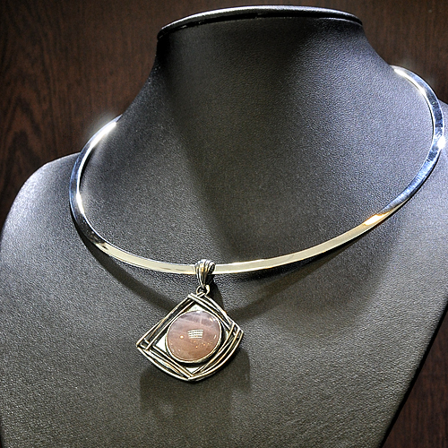 СРЕБЪРЕН КОМПЛЕКТ С РОЗОВ КВАРЦ, РЪЧНА ИЗРАБОТКА, СЪСТОЯЩ СЕ ОТ МЕДАЛЬОН, ПРЪСТЕН И ОБЕЦИ.