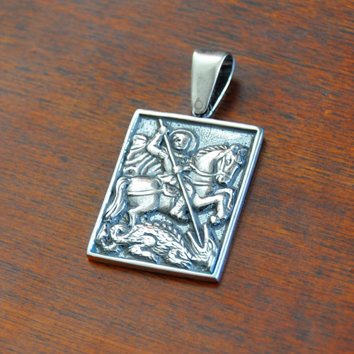 СРЕБЪРЕН МЕДАЛЬОН „СВ.ГЕОРГИ“.РАЗМЕРИ – 3.2/2.4 см.