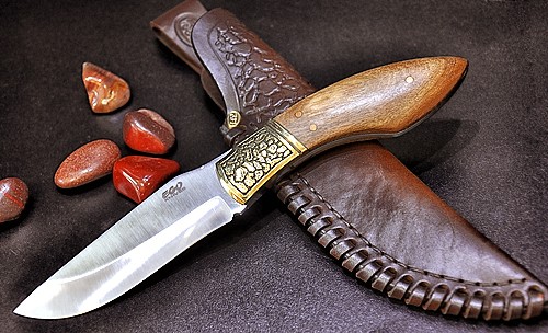 Нож модел 12 - дължина 250 мм, широчина 34 мм, изработен с бронзови апликации и дръжка от дърво /орех/!