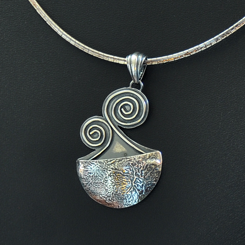 СРЕБЪРЕН МЕДАЛЬОН „СПИРАЛИ“, РЪЧНА ИЗРАБОТКА.ГОЛЕМИНА НА МЕДАЛЬОНА 4.4/3 см.