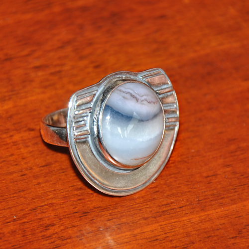 СРЕБЪРЕН ПРЪСТЕН С АХАТ „РАБОВО“, РЪЧНА ИЗРАБОТКА.ГОЛЕМИНА НА КАМЪКА – 15 мм., ГОЛЕМИНА НА ПРЪСТЕНА 2.2/2.5 см., РАЗМЕР НА ПРЪСТЕНА 53.ЗАБЕЛЕЖКА: ПРЪСТЕНЪТ Е С ПОДВИЖНА ВРЪЗКА ПОЗВОЛЯВАЩА РАЗШИРЯВАНЕТО МУ С ДО ДВА РАЗМЕРА!