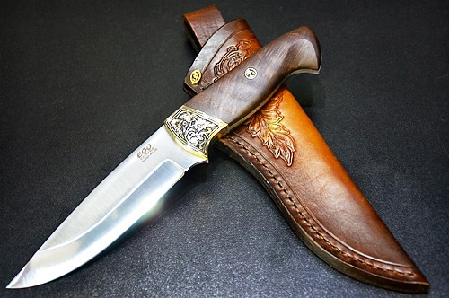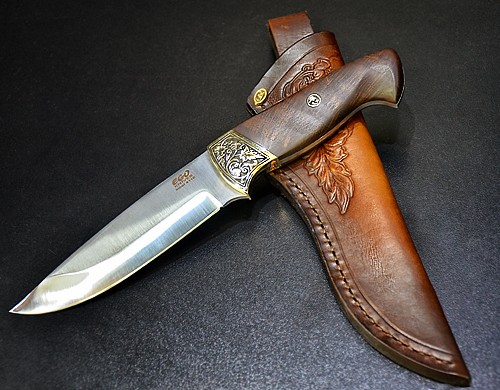 Нож модел 06 - дължина 260 мм, широчина 35 мм.Дръжка: орех.Апликации:бронз