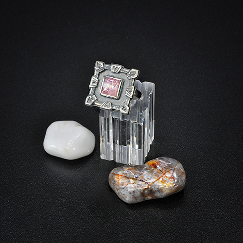 СРЕБЪРЕН ПРЪСТЕН С РОЗОВ КВАРЦ.ГОЛЕМИНА НА КАМЪКА – 9/9 мм., ГОЛЕМИНА НА ПРЪСТЕНА – 2.3/2.3 см.РАЗМЕР НА ПРЪСТЕНА 51, КОРИГИРАЩА ХАЛКА.