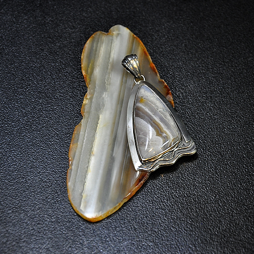СРЕБЪРЕН МЕДАЛЬОН С АХАТ, РЪЧНА ИЗРАБОТКА.ГОЛЕМИНА НА КАМЪКА – 32/17 мм., ГОЛЕМИНА НА МЕДАЛЬОНА – 4/2.6 см.