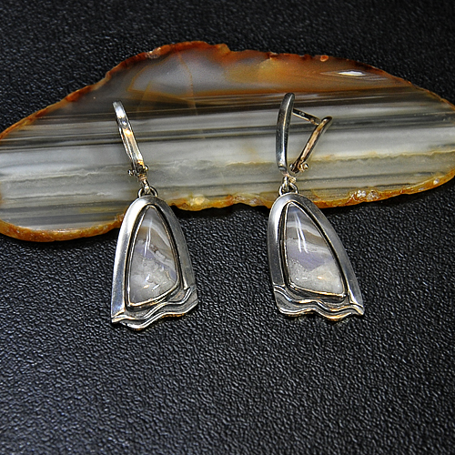 СРЕБЪРНИ ОБЕЦИ С АХАТ, РЪЧНА ИЗРАБОТКА. ГОЛЕМИНА НА КАМЪКА – 17/8 мм., ГОЛЕМИНА НА ОБЕЦАТА – 2.3/1.9 см.АНГЛИЙСКО ЗАКОПЧАВАНЕ.