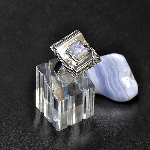 СРЕБЪРЕН ПРЪСТЕН С АХАТ „БЛУ ЛЕЙС“, РЪЧНА ИЗРАБОТКА.ГОЛЕМИНА НА ПРЪСТЕНА – 2.5/2.5 см.ГОЛЕМИНА НА КАМЪКА 9/9 мм.РАЗМЕР НА ПРЪСТЕНА 54, КОРИГИРАЩА ХАЛКА.