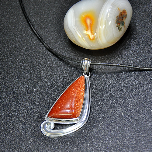 СРЕБЪРЕН МЕДАЛЬОН СЪС СИНТЕТИЧЕН АВАНТЮРИН, РЪЧНА ИЗРАБОТКА.ГОЛЕМИНА НА КАМЪКА 37/19 мм.ГОЛЕМИНА НА МЕДАЛЬОНА 5.5/1.9см.
