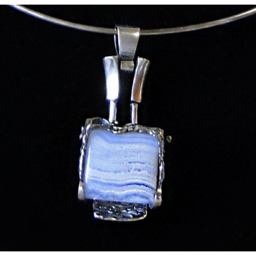 СРЕБЪРЕН МЕДАЛЬОН С АХАТ „СИНЯ ДАНТЕЛА“, РАЗМЕРИ НА МЕДАЛЬОНА – 5.5/2.3 см.