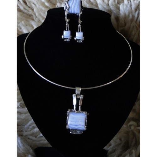 СРЕБЪРНИ ОБЕЦИ С АХАТ „СИНЯ ДАНТЕЛА“.ГОЛЕМИНА НА ОБЕЦАТА 3.5/1 см.АНГЛИЙСКО ЗАКОПЧАВАНЕ.