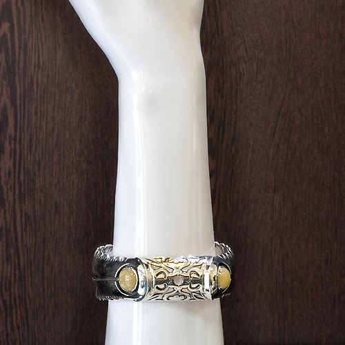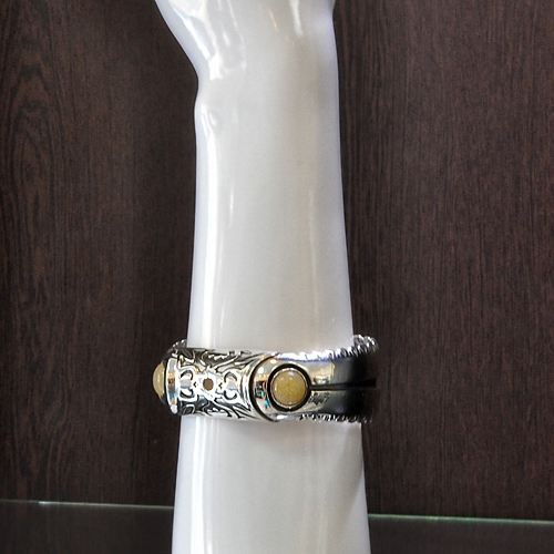 ОТВОРЕНА СРЕБЪРНА ГРИВНА, ИНКРУСТИРАНА С ДВА ЖЪЛТИ АХАТА.СРЕДНАТА ЧАСТ НА ГРИВНАТА Е РЪЧНА ИЗРАБОТКА, СТРАНИЧНИТЕ ЧАСТИ СА ОТЛЕТИ.ДИАМЕТЪР НА КАМЪНИТЕ – 11 мм., ОБИКОЛКА НА ГРИВНАТА ОКОЛО 17см., ШИРИНА НА СРЕДНАТА ЧАСТ – 2.2 см.,ШИРИНА НА СТРАНИЧНИТЕ ЧАСТИ – 2.2/2.6 см.С ВЪЗМОЖНОСТ ЗА КОРЕКЦИЯ ПО РЪКАТА.