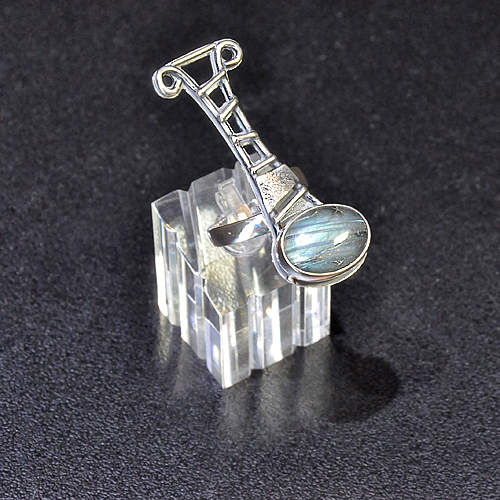 СРЕБЪРЕН ПРЪСТЕН С ЛАБРАДОРИТ, РЪЧНА ИЗРАБОТКА.ГОЛЕМИНА НА ПРЪСТЕНА – 4.6/1.7 см., НА КАМЪКА 15/11 мм.РАЗМЕР НА ПРЪСТЕНА 56, КОРИГИРАЩА ХАЛКА.