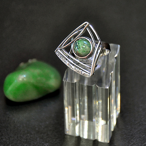 СРЕБЪРЕН ПРЪСТЕН С МЪХОВ АХАТ И АЖУРНИ МОТИВИ, РЪЧНА ИЗРАБОТКА.ГОЛЕМИНА НА ПРЪСТЕНА – 2.7/2.3 см., НА КАМЪКА 9 мм.РАЗМЕР НА ПРЪСТЕНА 57, КОРИГИРАЩА ХАЛКА.