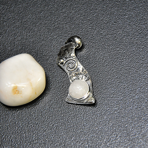 СРЕБЪРЕН МЕДАЛЬОН С МЛЕЧЕН КВАРЦ, РЪЧНА ИЗРАБОТКА.ГОЛЕМИНА НА МЕДАЛЬОНА – 3.5/1.5 см., ДИАМЕТЪР НА КАМЪКА 11 мм.