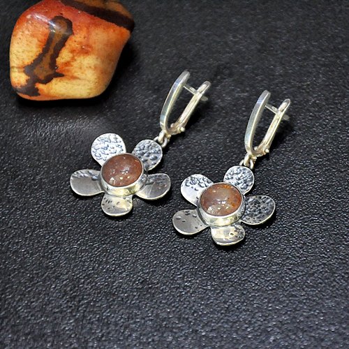 СРЕБЪРНИ ОБЕЦИ , С КАМЪК ЯГОДОВ КВАРЦ, РЪЧНА ИЗРАБОТКА.