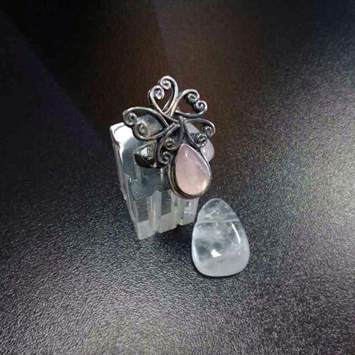 СРЕБЪРЕН ПРЪСТЕН С РОЗОВ КВАРЦ, РЪЧНА ИЗРАБОТКА. ГОЛЕМИНА НА ПРЪСТЕНА 3.3/2.2 см., ГОЛЕМИНА НА КАМЪКА – 14/10 мм.РАЗМЕР НА ПРЪСТЕНА 55, КОРИГИРАЩА ХАЛКА.