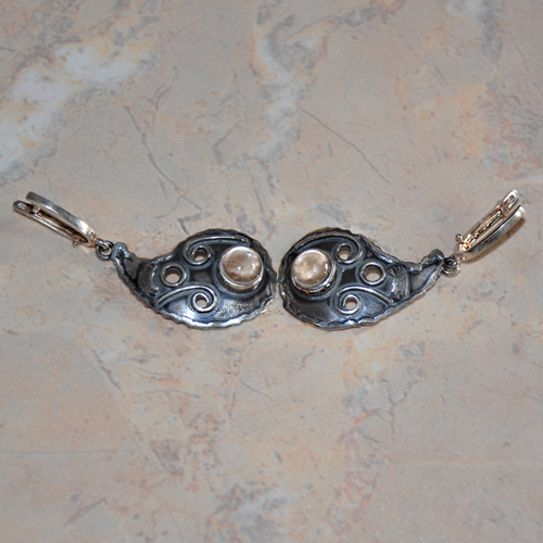 СРЕБЪРНИ ОБЕЦИ С ПЛАНИНСКИ КРИСТАЛ ВЪВ ФОРМАТА НА СТИЛИЗИРАНА ПАФТА, РЪЧНА ИЗРАБОТКА.ГОЛЕМИНА НА КАМЪКА – 7 мм., ГОЛЕМИНА НА ОБЕЦАТА 3/2 см.АНГЛИЙСКО ЗАКОПЧАВАНЕ.